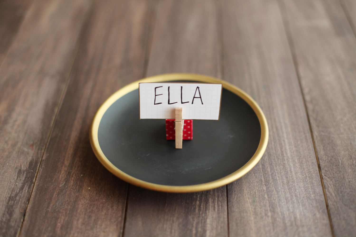 Wait a bit for your glue to dry and you’re all set! All you need to do it open the clothespin slightly, slide in your photo (or place card) and set the block wherever you’d like.